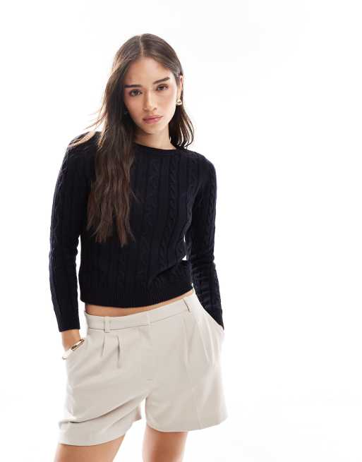 Superdry – Essentials – Slim Fit Pullover in Eclipse-Marineblau mit Zopfmuster