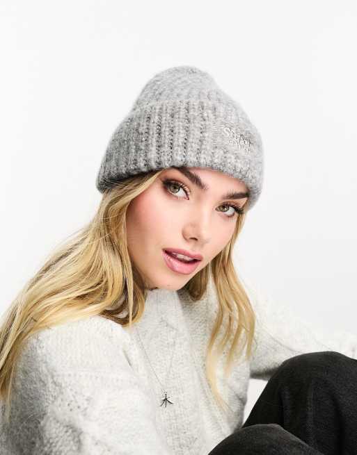 Superdry – Gerippte Strickmütze in meliertem Grau