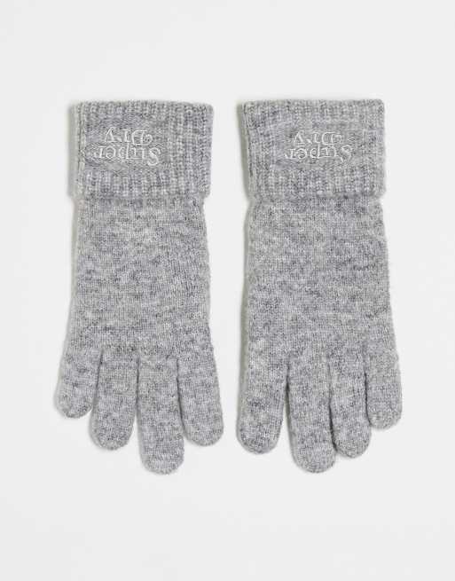 Superdry – Handschuhe aus Rippstrick in meliertem Grau