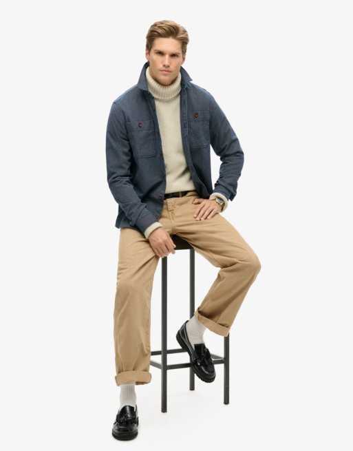 Superdry – Jeans-Hemdjacke in Indigoblau gestreift