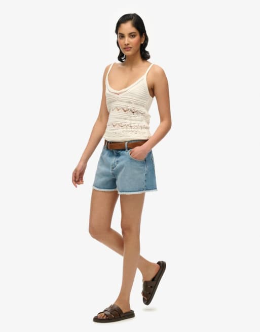 Superdry – Kurze Jeans-Shorts in Ice Pool-Blassblau mit mittelhohem Bund