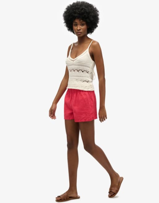 Superdry – Leinen-Shorts in Hyper Fire Coral