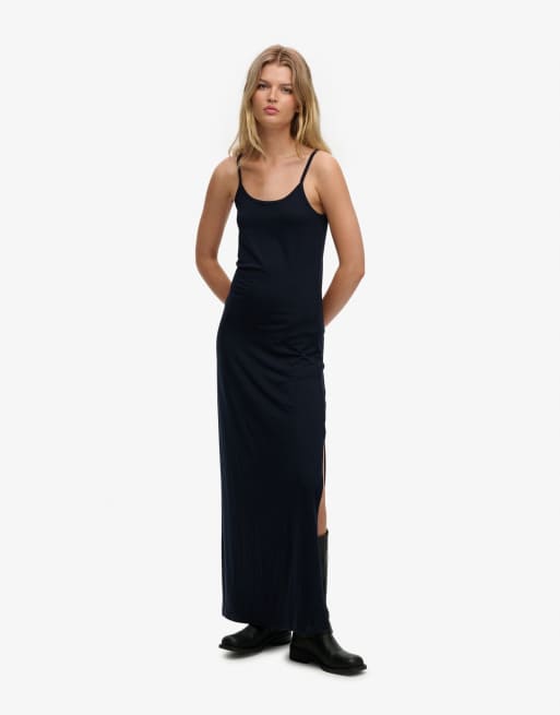 Superdry – Maxi-Trägerkleid aus Jersey in Eclipse-Marineblau