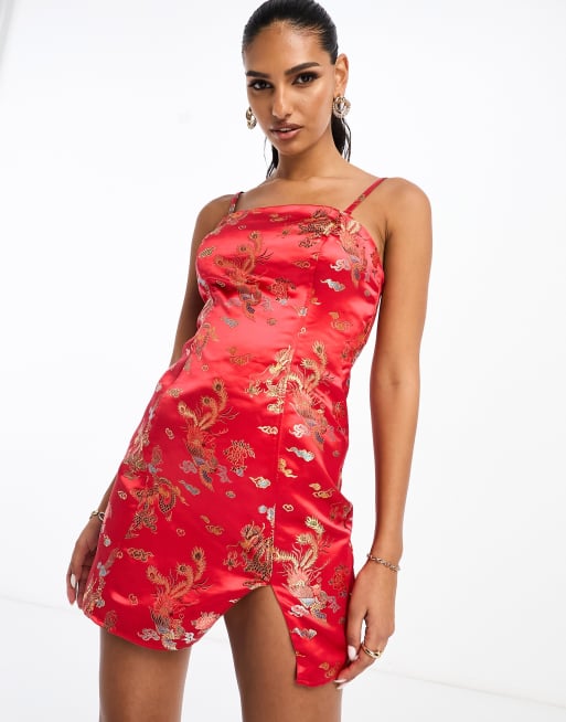 Superdry – Mini-Riemchenkleid aus rotem Brokat
