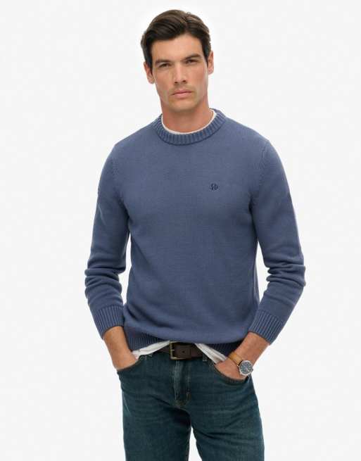 Superdry – Preppy – Pullover aus Baumwolle in zartem Marineblau