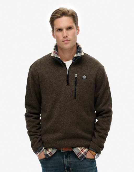 Superdry – Pullover aus Fleece in Sturm-Olivgrün mit Gittermuster-Futter