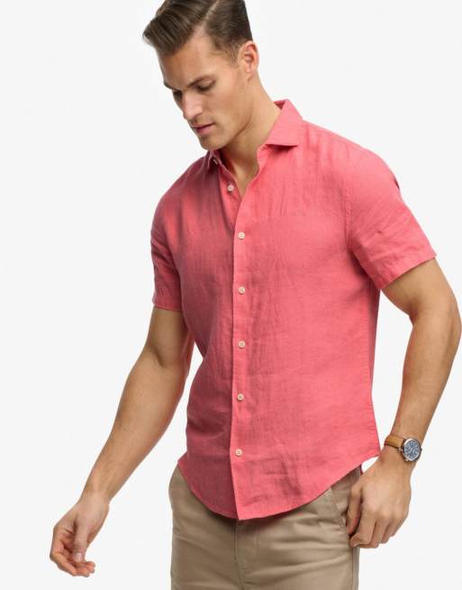 Superdry – Riviera – Kurzärmliges Leinenhemd in Koralle