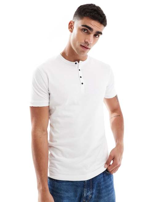 Superdry – Slub – Kurzärmliges Grandad-Oberteil aus Jersey in optischem Weiß