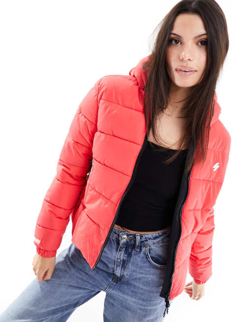 Superdry – Spirit Sports – Steppjacke in Rosa mit Kapuze