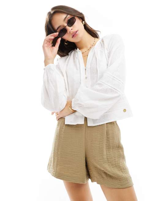 Superdry – Strandoberteil aus Baumwolle in gebrochenem Weiß
