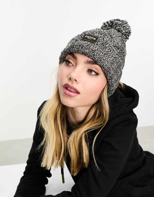 Superdry – Strickmütze in meliertem Schwarz mit Zopfmuster