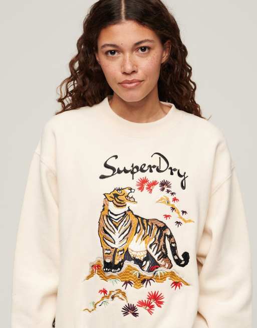 Superdry – Suika – Locker geschnittenes Sweatshirt in Hellbeige mit Stickerei