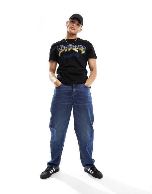 Superdry – T-Shirt in Schwarz mit Rockband-Grafikprint im 70er-Design