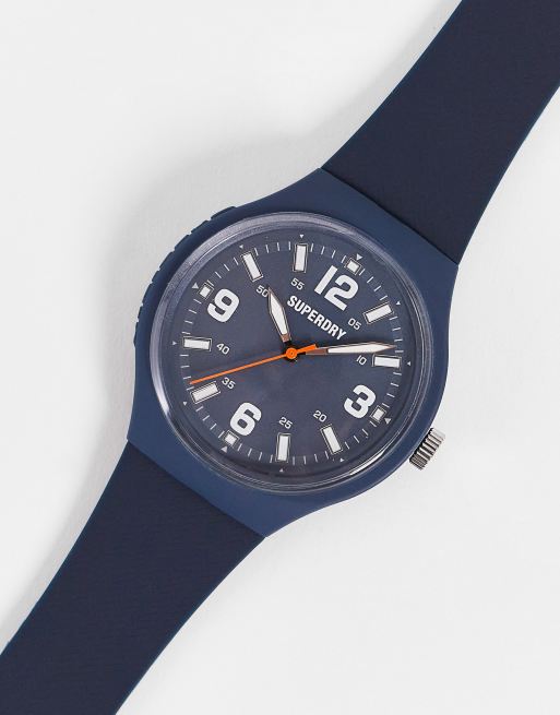 Superdry – Uhr mit Silikonarmband in Marineblau