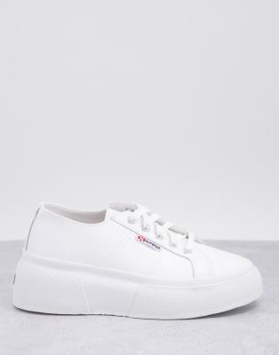 Superga – 2287 – Stoffschuhe in Weiß mit dicker Sohle