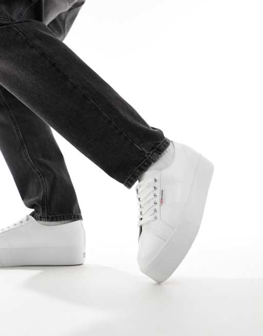 Superga – Sneaker in Weiß mit Plateausohle