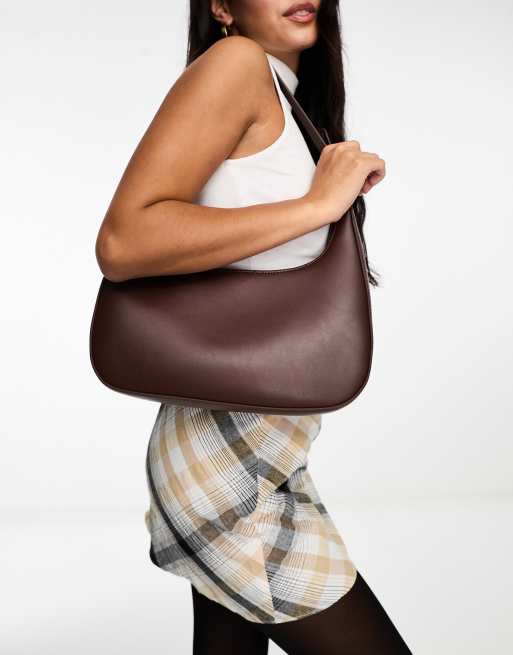SVNX – Abgerundete Schultertasche in Dunkelbraun