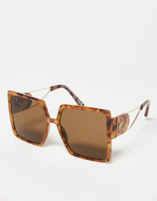 SVNX – Eckige Oversize-Sonnenbrille in Schildpatt-Optik mit Bügeldetail
