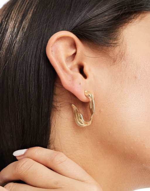 SVNX – Halbmond-Creolen in Goldoptik mit geschmolzenem Metalldetail