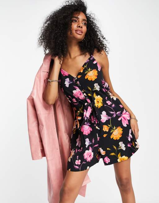 Ted Baker – Dayna – Bedruckter Playsuit in Schwarz mit Knopfleiste vorne
