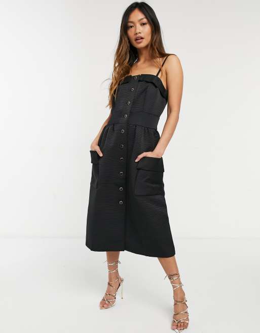 Ted Baker – Kleid aus Baumwolle mit Knöpfen in Schwarz