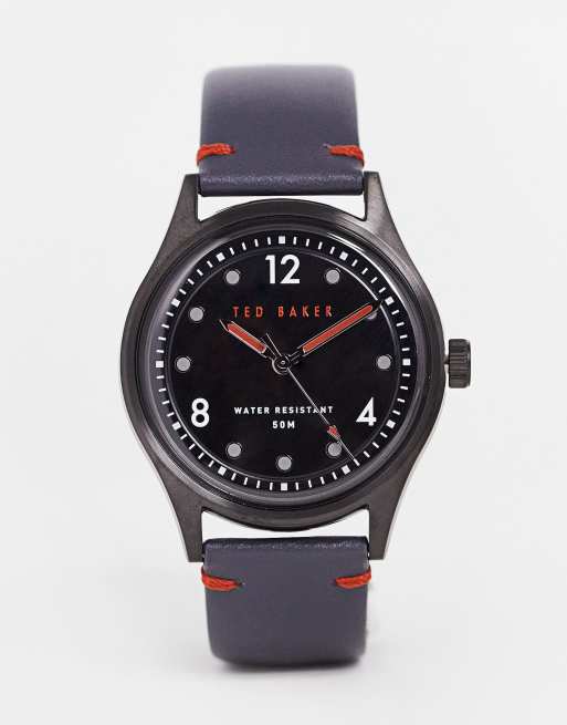 Ted Baker – Uhr in Grau mit schwarzem Zifferblatt und Armband aus echtem Leder
