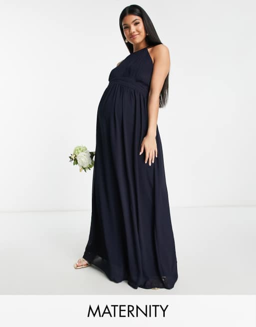 TFNC Maternity – Bridesmaid – Maxikleid aus Chiffon in Marineblau mit plissierter Vorderseite