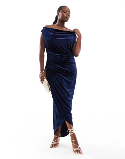 TFNC Plus – Samt-Maxikleid in dunklem Marineblau mit U-Boot-Ausschnitt