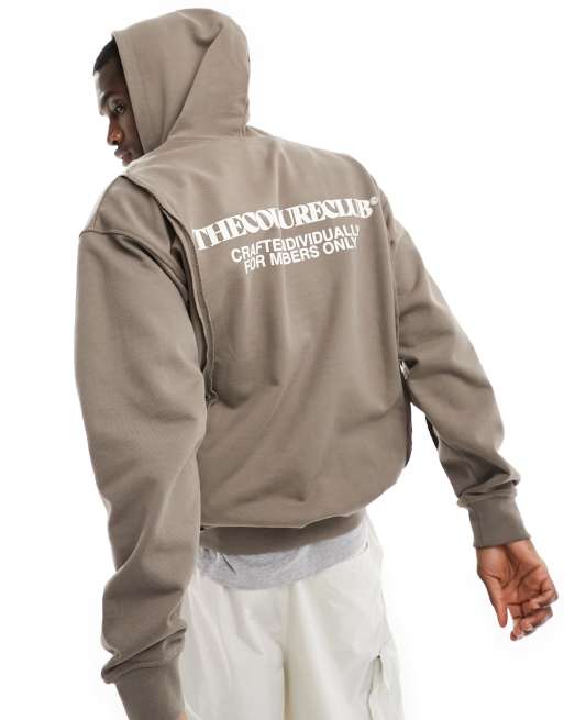 The Couture Club – Kapuzenpullover in Braun mit kurzem Reißverschluss und unbehandeltem Saum, Kombiteil