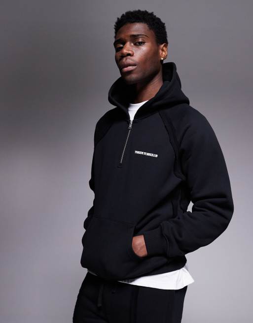 The Couture Club – Kapuzenpullover in Schwarz mit unversäuberten Kanten und Logo, Kombiteil