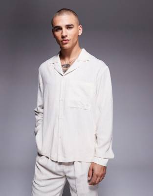 The Couture Club – Langärmlige Hemdbluse in Beige mit Webstruktur, Kombiteil