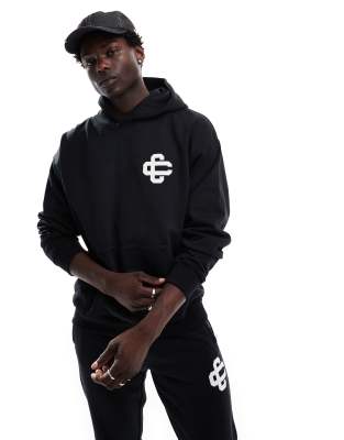 The Couture Club – Schwerer Kapuzenpullover in Schwarz mit Emblem, Kombiteil