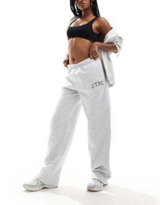 The Couture Club – Weit geschnittene Jogginghose in Grau meliert mit „CTRE“-College-Print