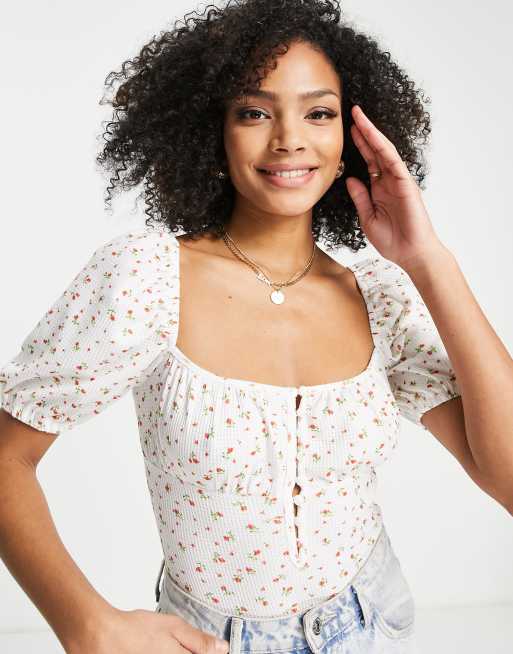 The Frolic – Pikee-Body in Weiß mit Blümchenmuster