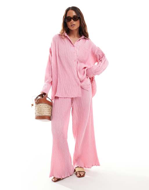 The Frolic – Tourmaline – Strand-Set mit Hose und Hemd in Rosa