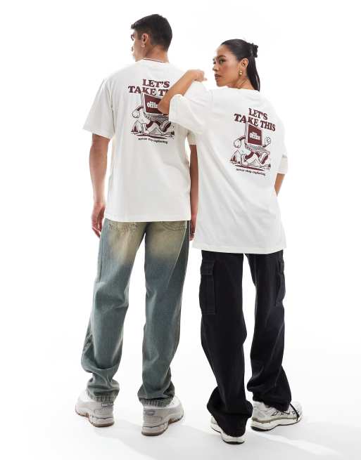 The North Face – Explore – Oversize-T-Shirt in Wollweiß mit Rückenprint