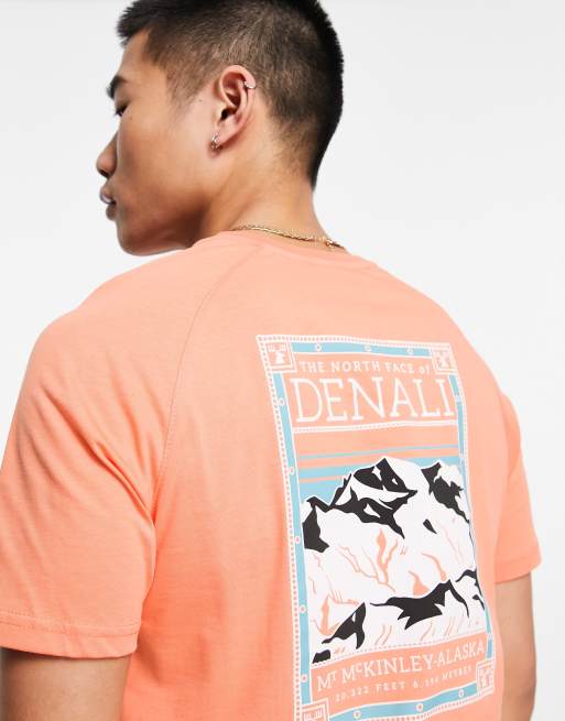 The North Face – Faces Denali – T-Shirt in Orange mit Aufdruck hinten