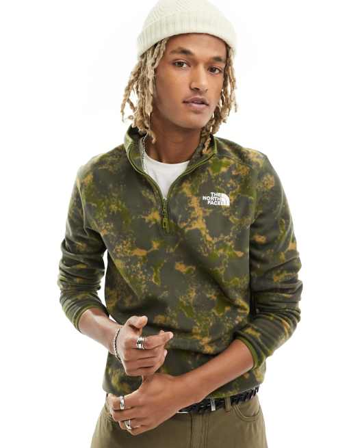 The North Face – Glacier – Fleece-Pullover mit Military-Muster in Moos-Grün mit kurzem Reißverschluss und Logo