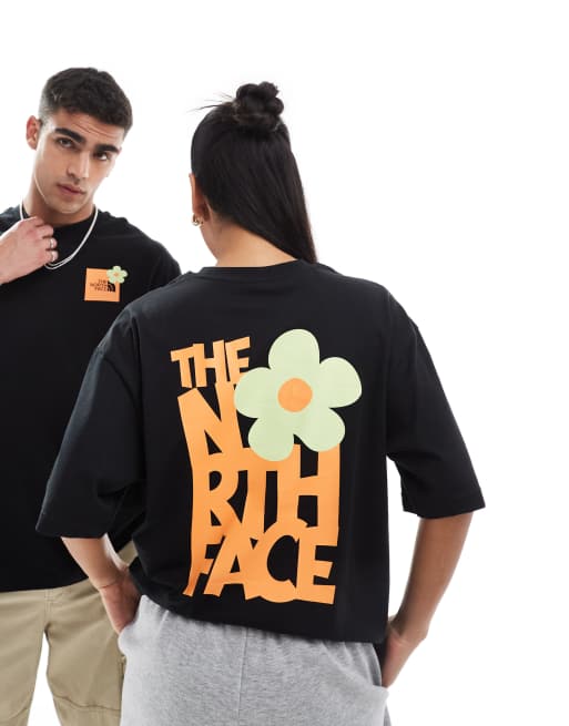 The North Face – Oversize-T-Shirt in Schwarz mit Blumen-Rückenprint