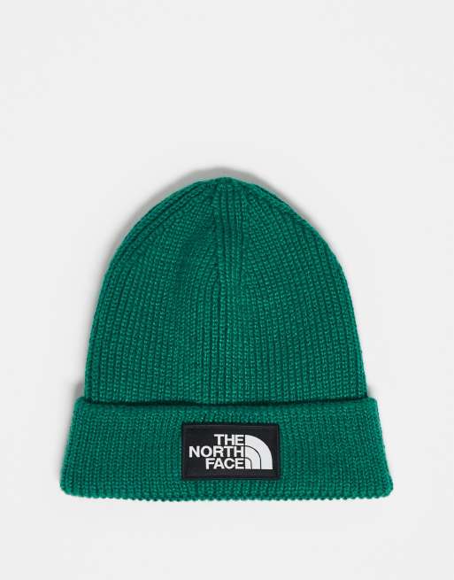 The North Face – Strickmütze in Grün mit Box-Logo und Umschlag