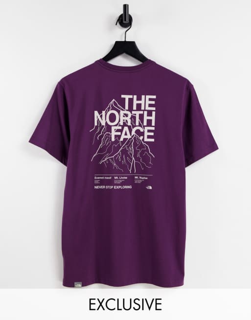 The North Face – T-Shirt in Burgunderrot mit Bergkontur-Print, exklusiv bei ASOS