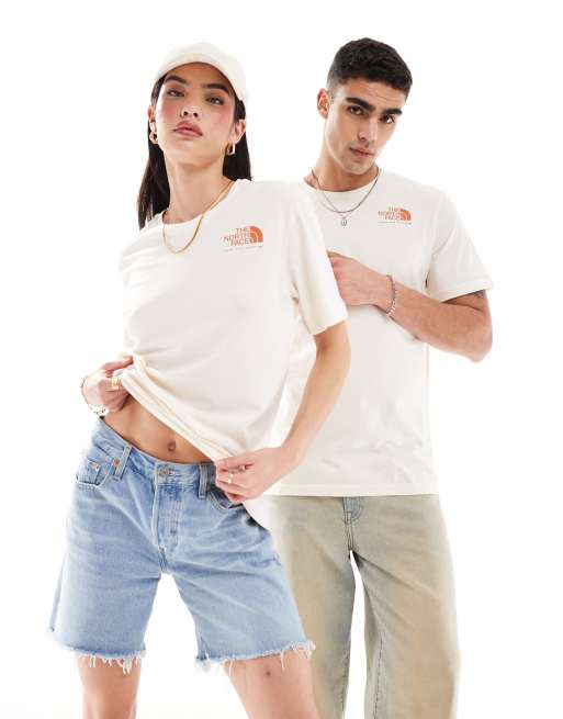 The North Face – T-Shirt in Wollweiß mit Grafikprint auf dem Rücken