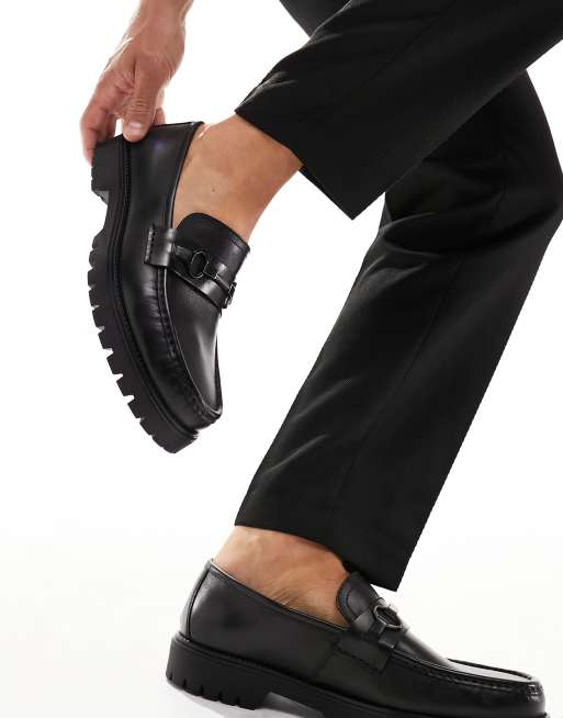 Thomas Crick – Leder-Loafer in Schwarz mit Trensendetail und dicker Sohle