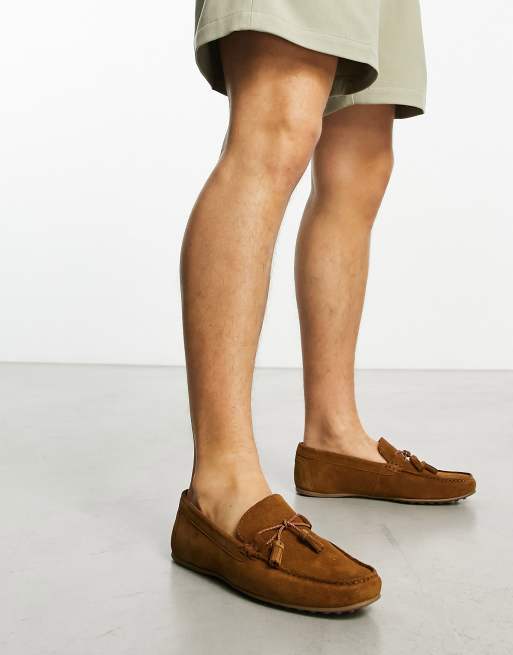 Thomas Crick – Wildleder-Mokassins in Hellbraun mit farblich abgesetztem Schnürdetail