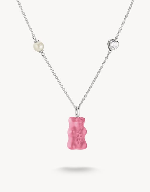 Thomas Sabo – Silberfarbene Halskette mit Anhänger in Weiß und Rosa