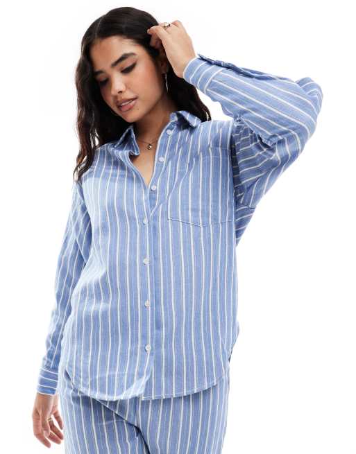 Threadbare – Blau-weiß gestreiftes Hemd in Leinenoptik, Kombiteil