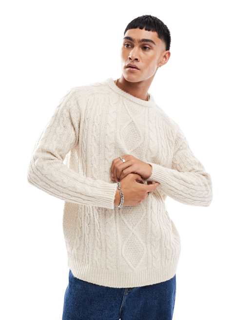 Threadbare – Dicker Oversize-Strickpullover in Cremeweiß mit Zopfmuster