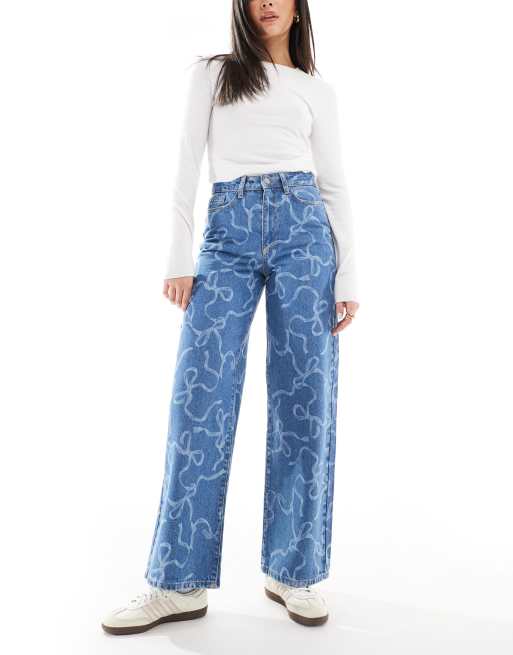 Threadbare – Gerade geschnittene Jeans in mittelblauer Waschung mit Schleifenmuster