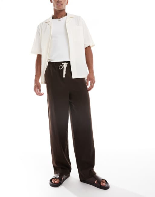 Threadbare – Hose in Braun mit hohem Leinenanteil und farblich abgesetztem Kordelzugbund