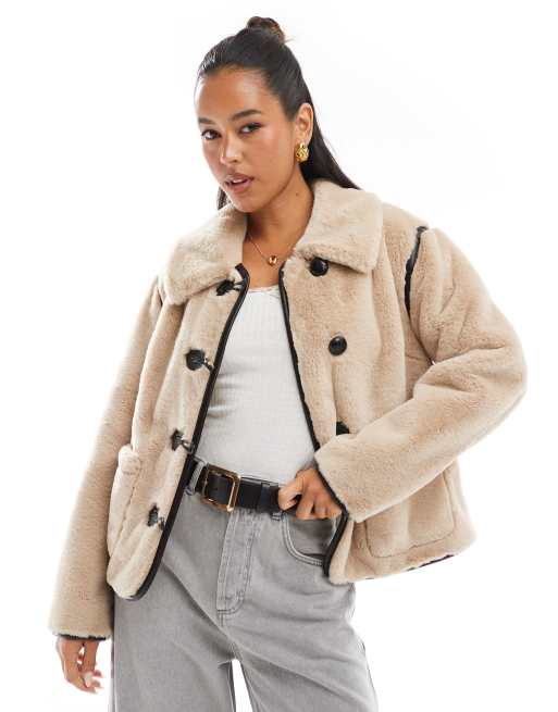 Threadbare – Jacke aus Kunstpelz in Steinbeige mit Knopfleiste